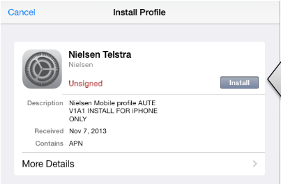 - Per configurare la rete dati, occorre aprire la mail di conferma di Nielsen sul dispositivo Apple e cliccare sul link per scaricare il profilo