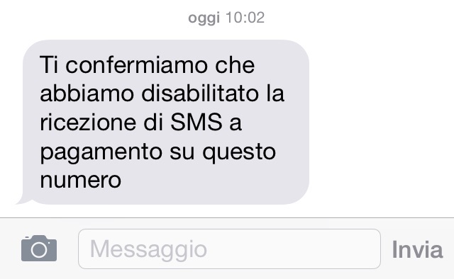 NOTA: Se ricevete SMS a pagamento da istituti bancari, ad esempio ad ogni utilizzo della vostra carta di credito, attivando il barring non riuscirete più a ricevere questo genere di SMS a pagamento.