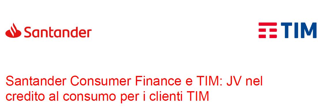 Il progetto annunciato lo scorso novembre da Tim e Banco Santander vede oggi la luce. Gli accordi prevedevano la creazione di una joint venture nella quale Santander Consumer Bank S.p.A. avrebbe controllato il 51% e TIM S.p.A il 49%.
