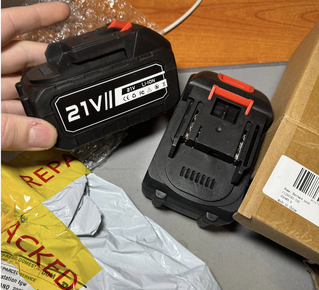 Ci rechiamo al punto di ritiro, chiediamo il pacco e l’addetto va a prenderlo in magazzino, contrassegnandolo come “consegnato” ancor prima di darcelo. Appena ce lo porge notiamo immediatamente che il pacco è stato riparato con lo scotch giallo di DHL “repacked”. Ci dicono “lo avranno ispezionato in dogana”, ma ormai era il momento di fare l’unboxing e della dashcam e del suo KIT 4G nemmeno l’ombra: dentro troviamo 2 batterie al litio cinesi da trapano.