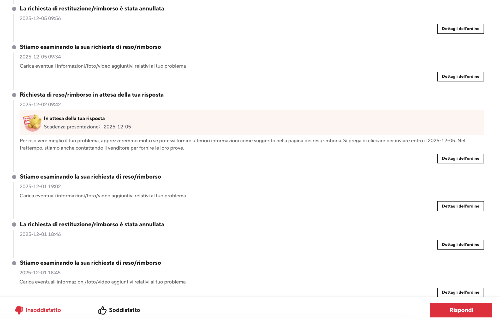 Tra chatbot con IA, operatori fantasiosi che rassicurano con cuoricini e venditore ufficiale 70mai che fa finta di non capire, riusciamo ad allegare foto e a spiegare tutto e AliExpress apre una pratica finalmente: la storia va avanti per giorni, ci chiedono più volte di caricare foto, poi chiedono un video e infine, ci chiedono di fornire una prova di DHL che dice che il contenuto è diverso da quello acquistato (???).