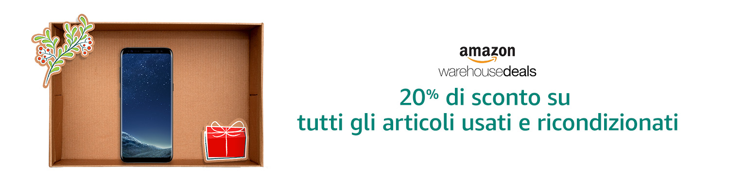 Dal 20 al 27 Novembre sarà possibile acquistare tutti i prodotti usati e ricondizionati Warehhouse Deals con uno sconto del 20%. Lo sconto sarà visibile nel riepilogo ordine.