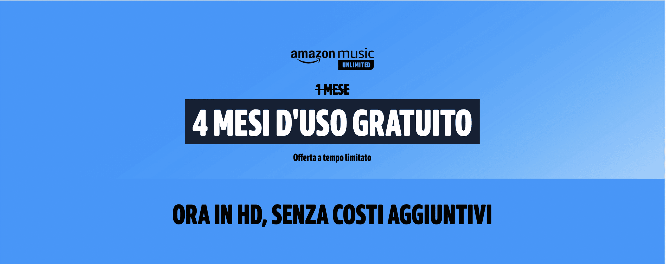 In occasione del Offerte Esclusive Prime 2022, Amazon ha decido di regalare ben 4 mesi di Amazon Music Unlimited HD, il servizio musicale di Amazon illimitato che sfida Spotify con il suo servizio che ora include l’HD gratuitamente per sempre e che garantisce un catalogo musicale immenso e sempre disponibile sia in cloud, sia offline.