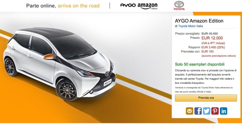Abbiamo visto Amazon conquistare tutti i settori, passando dall’elettronica all’abbigliamento, ma di certo non ci aspettavamo che diventasse una concessionaria online, e questo grazie alla Toyota Aygo venduta in un’edizione limitata che prevede solo 50 esemplari.