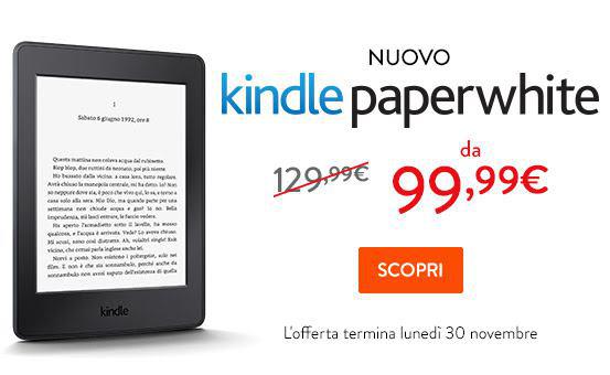 Questa offerta è valida su Amazon fino al 30 di Novembre ed include anche Kindle Paperwhite 3G che al posto di 189,99 euro costerà 159,99 euro, con uno sconto stavolta più basso, corrispondente al 16%, ma sempre un risparmio di 30 euro!