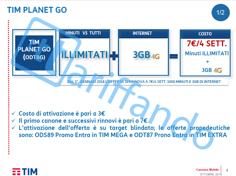 Tim Planet GO prevede minuti illimitati (dal 1 Gennaio 2018 diventeranno 1000), e 3GB in 4G a soli 7€ ogni 4 settimane. Un’ offerta winback dunque molto valida ed interessante in un mercato delle TLC sempre più caldo!