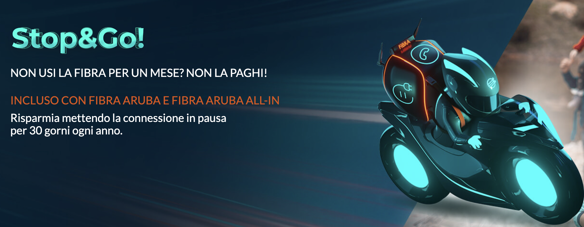 Aruba offre l’interessante servizio Stop & Go: permette di “mettere in pausa” la Fibra e non pagare quando inutilizzata