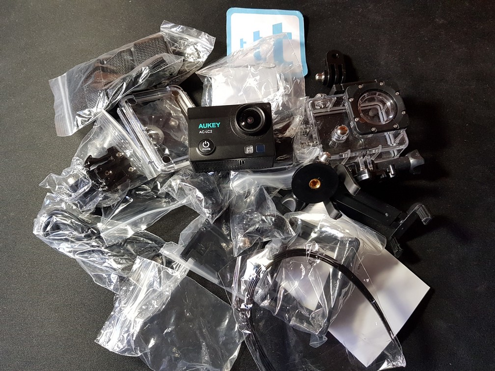 CONFEZIONE Completissima la confezione di questa action cam di Aukey, la scatola della AC-LC2 contiene una miriade di accessori, supporti di tutti i tipi e la custodia impermeabile fino a 30 metri. Non manca una seconda batteria e un remote control molto utile per azionare a distanza la nostra simpatica action cam.