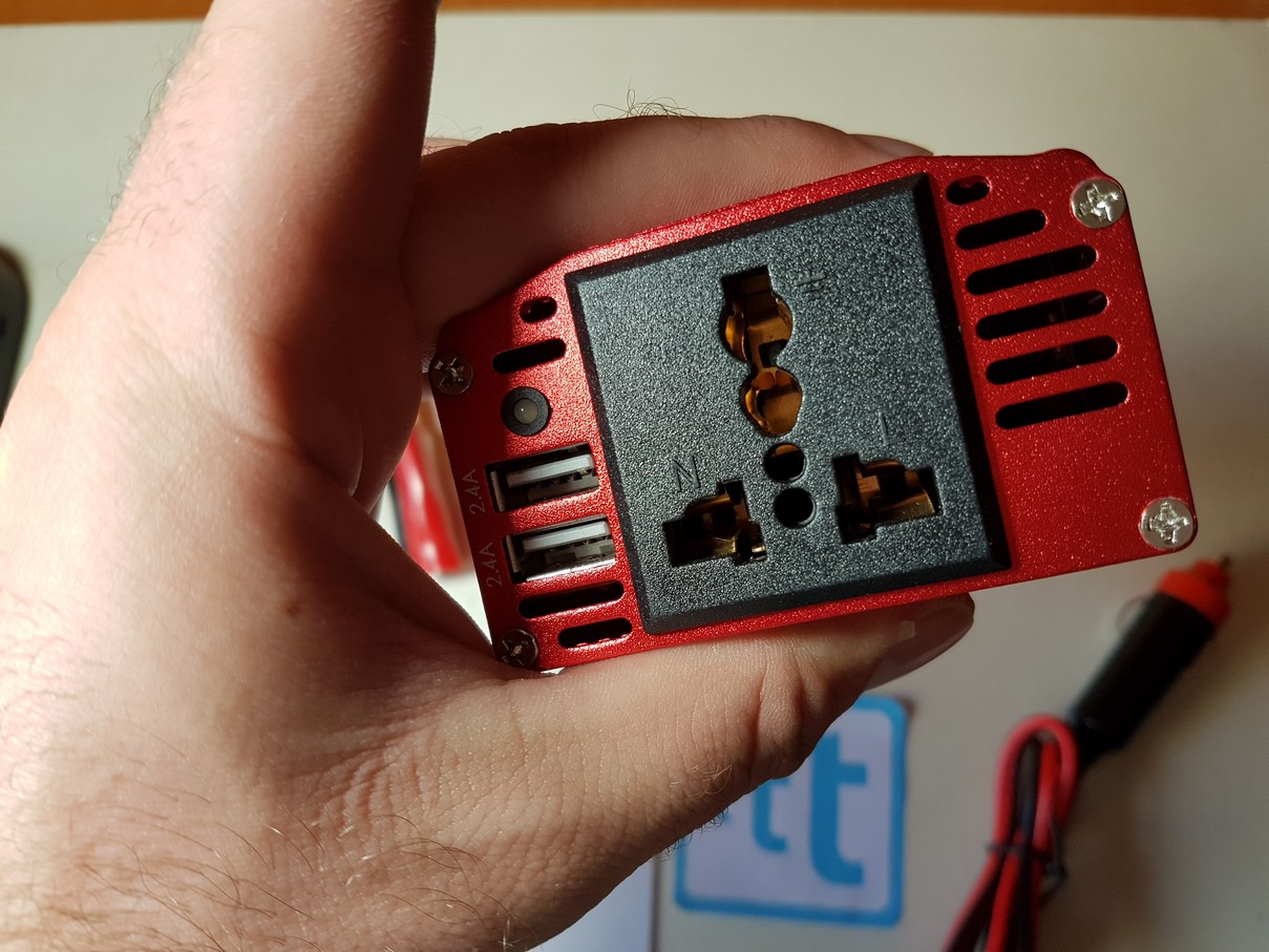FUNZIONAMENTO Il capitolo più importante è probabilmente questo: il prodotto funziona alla perfezione e ci ha permesso di ricaricare tranquillamente il nostro notebook in viaggio… ma tenete ben a mente una cosa: avete solo 150W a disposizione e con una potenza di picco molto bassa! Niente quindi prodotti “strani” o il prodotto andrà in protezione spegnendosi fino al suo raffreddamento. In particolare abbiamo testato il prodotto con un saldatore a stagno da 100W e non è riuscito a farlo funzionare.