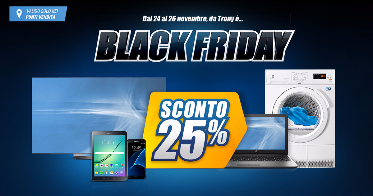 Le offerte di Trony dureranno ben 7 giorni, infatti, inizieranno domani venerdì 23 Novembre per concludersi il 30 Novembre. Anche qui ci sono offerte davvero molto interessanti ma, sfortunatamente, non tutti i punti vendita Trony aderiranno a tali promozioni.