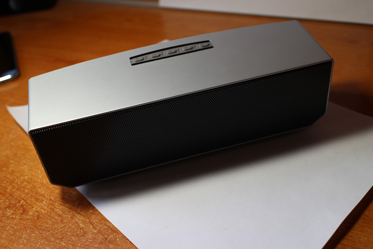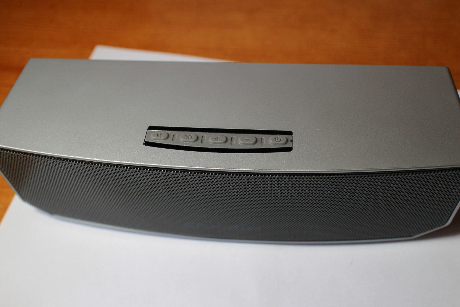 COSTRUZIONE La costruzione del prodotto è anch’essa eccellente, seppur realizzato interamente in plastica ad eccezione della griglia dell’altoparlante (stereo, 2 x 5W) realizzata in metallo è solida e non presenta scricchiolii, anzi, la base è di gomma e non rovina le superfici a cui lo si appoggia, curatissimo. Sul corpo troviamo 5 tasti: un pulsante di mute, uno che abilita il 3D sound, tasti volume con funzione di cambio traccia e tasto di accensione e spegnimento, utile sia per la funzione di pairing che per rispondere e mettere giù una chiamata.
