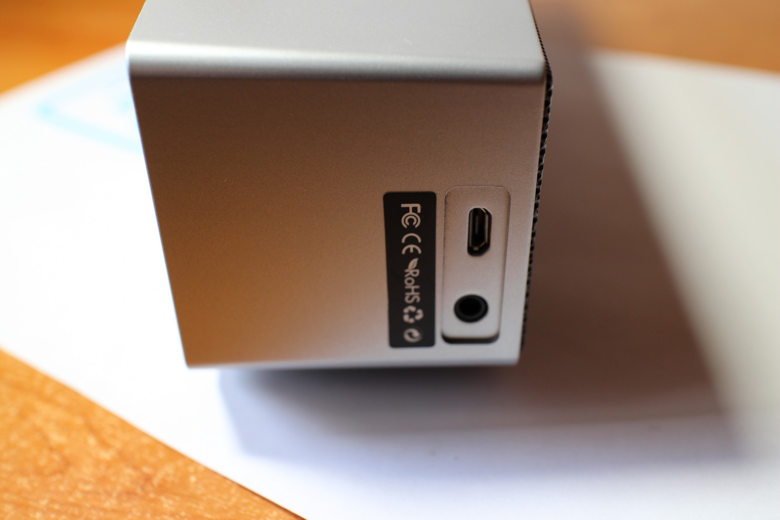 Nel lato destro presente la presa micro usb per ricaricalo e un ingresso AUX utilissimo per dispositivi non dotati di bluetooth.