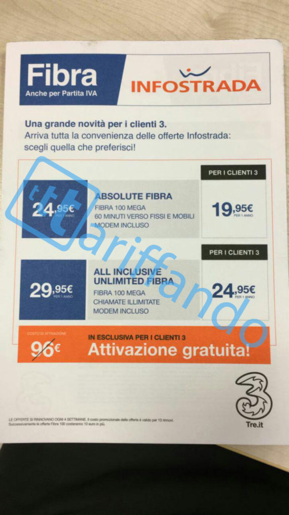 Per i clienti 3 Italia fibra Infostrada a partire da 19,95€
