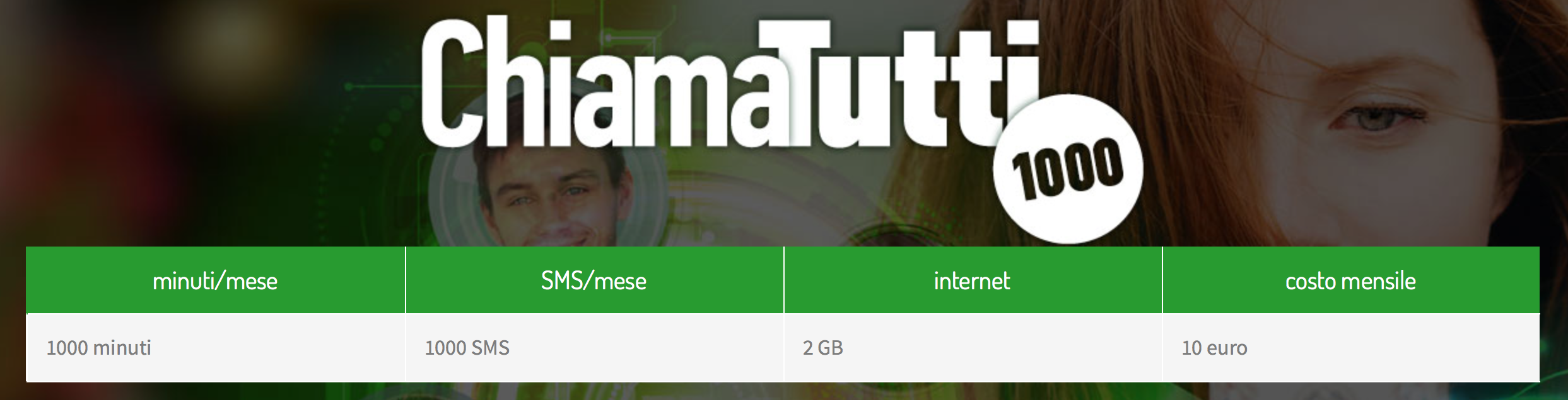 Al superamento della soglia dei 2GB, è, comunque, possibile continuare a navigare alla ristretta velocità di 32Kbps, senza alcun costo aggiuntivo. L’offerta sarà soggetta a rinnovo automatico lo stesso giorno del mese successivo e, per evitare spiacevoli inconvenienti è utile che il credito residuo sia sufficiente. In caso contrario, la promozione sarà sospesa fino al momento di avvenuta ricarica da effettuare entro e non oltre 7 giorni (PENA: disattivazione dell’offerta ChiamaTutti1000).