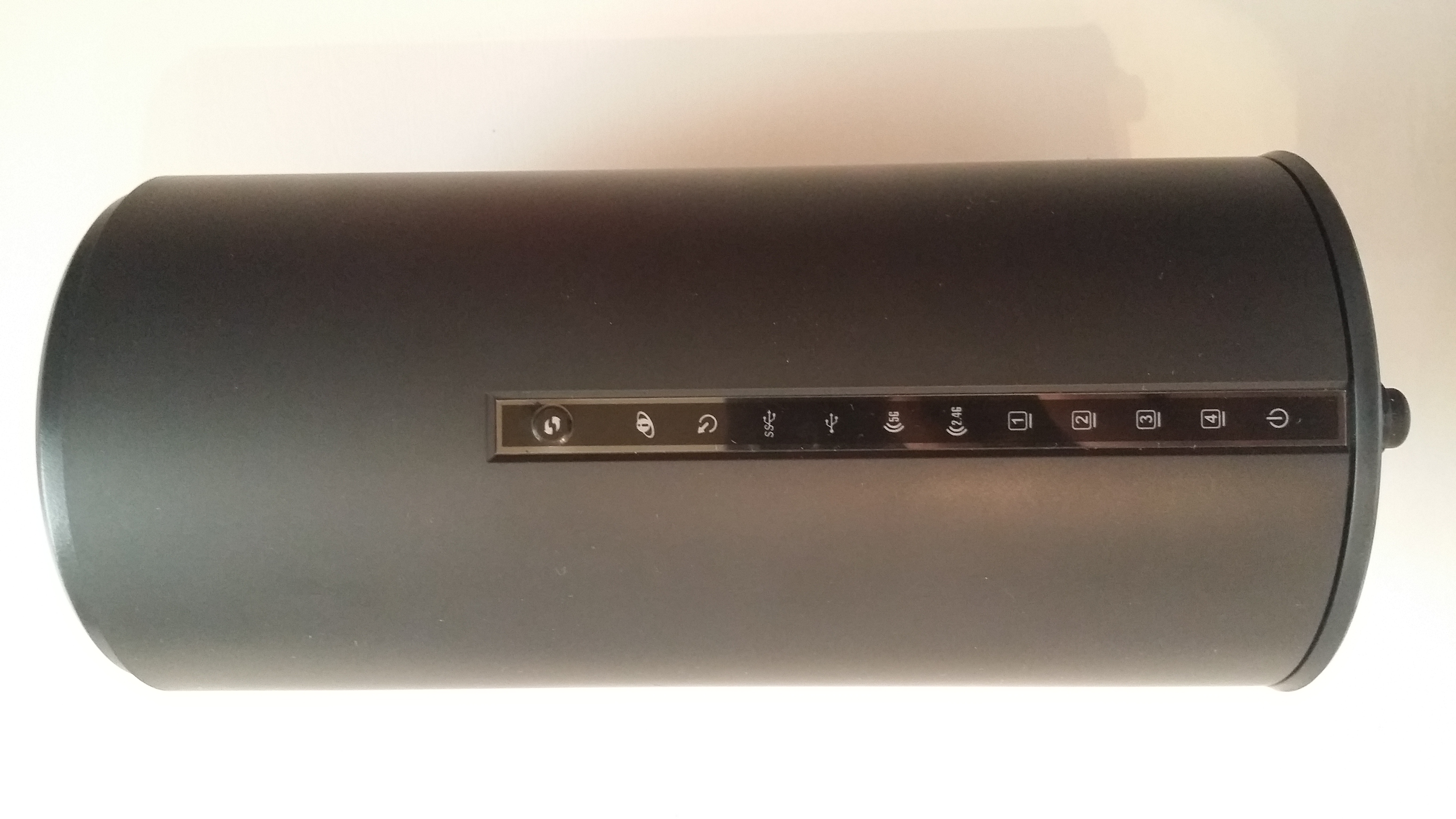 COSTRUZIONE: I materiali sono do ottima fattura, ma parliamo di normalità visto che è un top di gamma. Architettura insolita data dalla forma cilindrica con la quale è stato concepito questo modem D-Link DSL-3590L che ha catturato la mia attenzione per quanto non sia appunto una consueta forma. I led luminosi di stato sono posizionati il colonna nella parte davanti del modem, dietro invece troviamo ovviamente tutte le entrate per i cavi.