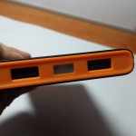 COSTRUZIONE Ha dimensioni compatte per la grandissima capacità offerta, pari a ben 10.000 mAh: 14,4 x 7,5 x 1,5 cm e pesa poco, solo 227g, ma quello che più ci piace è la costruzione, è infatti realizzata in plastica di ottima qualità (sembra quasi metallo) e ha un frame colorato, nel nostro caso arancione, che da davvero un tocco di design in più! Presenti 2 USB da 2.4A ciascuno, con tecnologia Smart e tutte le protezioni contro sovraccarichi e corto circuiti. La carica rimanente si verifica grazie a 4 LED attivabili con una pressione dell’unico tasto presente, una doppia pressione attiverà la torcia al LED, molto luminosa!