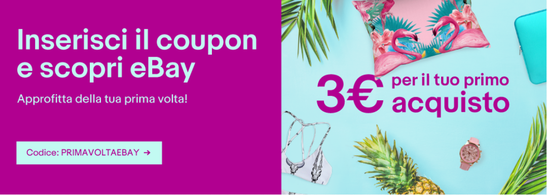 Se non avete mai acquistato su eBay questa potrebbe essere l’occasione buona. Il noto sito lancia infatti una nuova offerta dedicata a chi non ha mai acquistato su eBay e a tutti i nuovi account (quindi se avete amici/famigliari non registrati potete approfittarne!) e omaggia un coupon di 3€ sul primo acquisto effettuato.