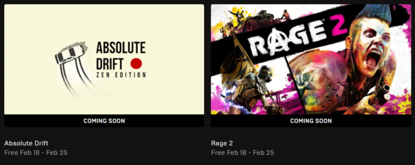 Epic Games ha svelato i prossimi giochi gratuiti che saranno regalati nella settimana dal 18 al 25 febbraio. In questo arco di tempo i giocatori potranno riscattare gratuitamente da Epic Games Store ben due giochi: Rage 2 e Absolute Drift.