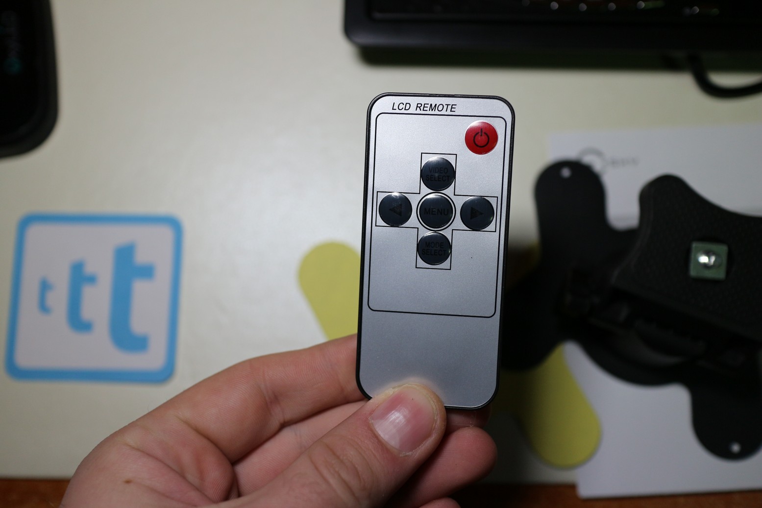 Il telecomando è comodo, sopratutto poichè il monitor Esky ha ben due ingressi video di tipo RCA, esso permette di commutare gli ingressi senza troppi problemi ed ha già la batteria.