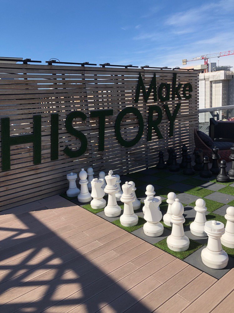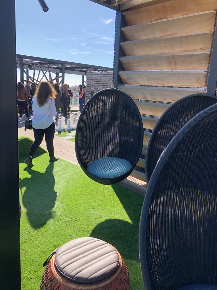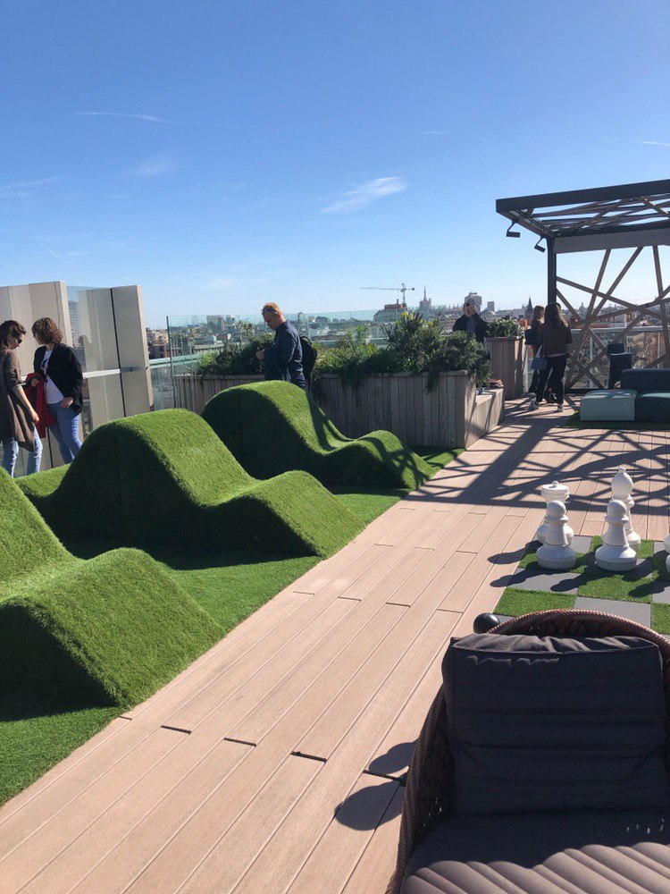 – Il piano 9 è occupato da una meravigliosa terrazza arredata, di cui è forse meglio far parlare le foto. Non manca il motto di Amazon ben in evidenza: “Work Hard, Have Fun, Make History”.
