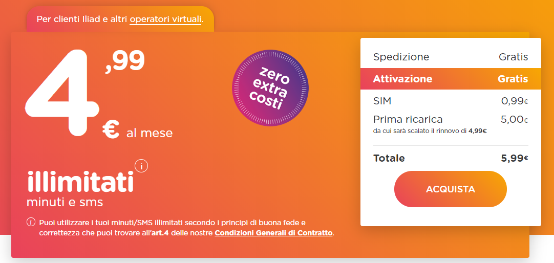 Per l’acquisto della Sim e la contestuale attivazione della promo, o per tutte le altre informazioni sull’offerta, vi rimandiamo alla pagina ufficiale.