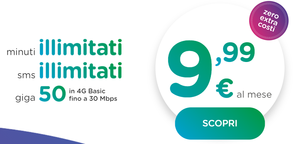 - Minuti ed SMS illimitati verso tutti in Italia;