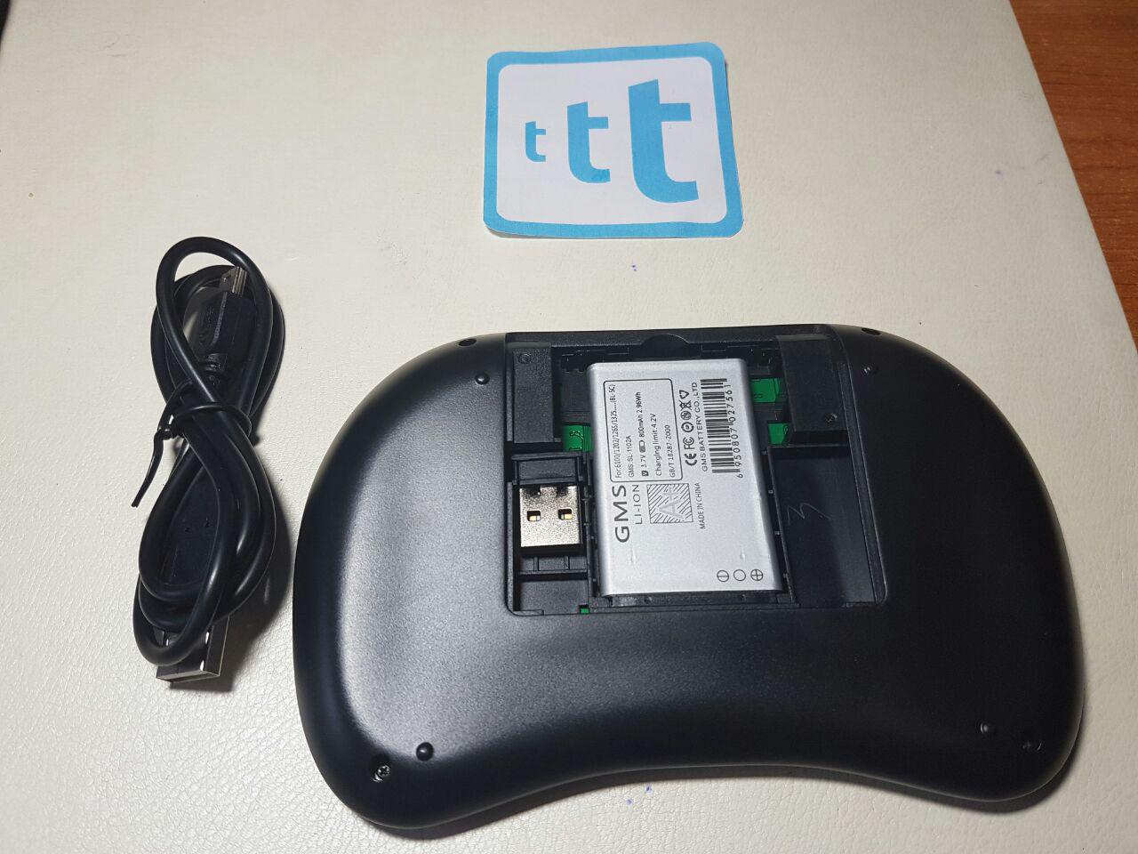 COSTRUZIONE E FUNZIONAMENTO Non ci dilungheremo molto, è una semplice tastiera con un riquadro touch che supporta varie gesture, il tocco recepito è tutto sommato preciso e si riesce a muoversi discretamente bene nei menu di smart TV e TVBox. L’abbinamento è immediato con qualsiasi prodotto, basta collegare il ricevitore USB e accenderla per essere pronti. Interessante la strana batteria al lito, enorme, che ricorda quella dei vecchi nokia (Bl5c) che garantisce un’autonomia record.