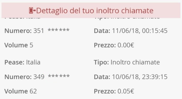 In realtà i clienti si sono visti addebitare una tariffa pari a 0,05€ al minuto, senza scatto alla risposta, quando la chiamata veniva inoltrata ad un altro numero. Per controllare se anche voi siete stati “vittima” di questo errore di sistema, basta effettuare il login nella propria area personale, recarsi nella pagina dedicata a “Consumi e Credito”, cliccare su “Dettaglio Consumi” e scorrere la tabella “Dettaglio del tuo inoltro chiamate”.