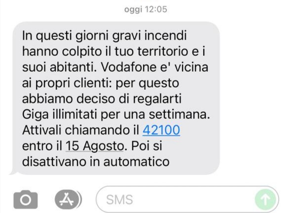 Vodafone esprime solidarietà e vicinanza ai cittadini siciliani, provati dagli incendi che continuano ad imperversare in diverse zone boschive della regione, e decide di regalare giga illimitati per una settimana.
