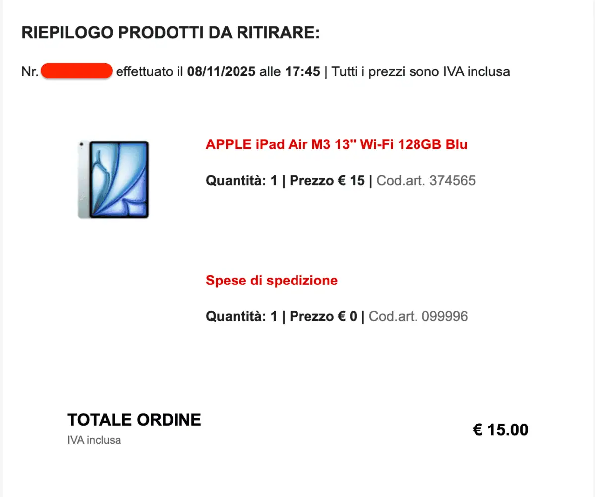 Da diversi giorni su internet non si parla che di questo: nonostante il periodo di Black Friday, complici forse offerte talvolta deludenti, la “promozione” di MediaWorld che ha visto vendere un Apple iPad Air M3 da 13″ 128GB Wi-Fi a 15€ è stata quella che più ha fatto parlare di sé, sia durante, che dopo. Ma andiamo in ordine…