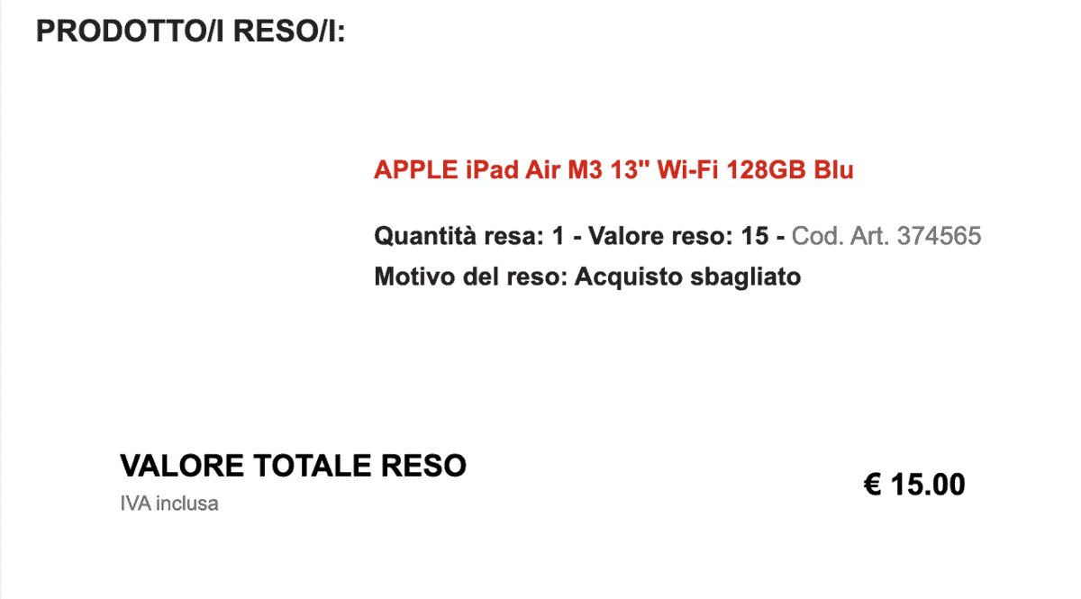 Pur avendo restituito l’iPad così celermente e risposto al servizio clienti, ad oggi dopo quasi 4 giorni non abbiamo ricevuto né il rimborso dei 15€ e nemmeno il buono da 20€ omaggio che ci è stato promesso. Confidiamo che visto il weekend di mezzo tutto ciò avverrà in queste ore/giorni, viceversa vi aggiorneremo e scriveremo nuovamente al servizio clienti che non ci ha al momento degnato di risposta.