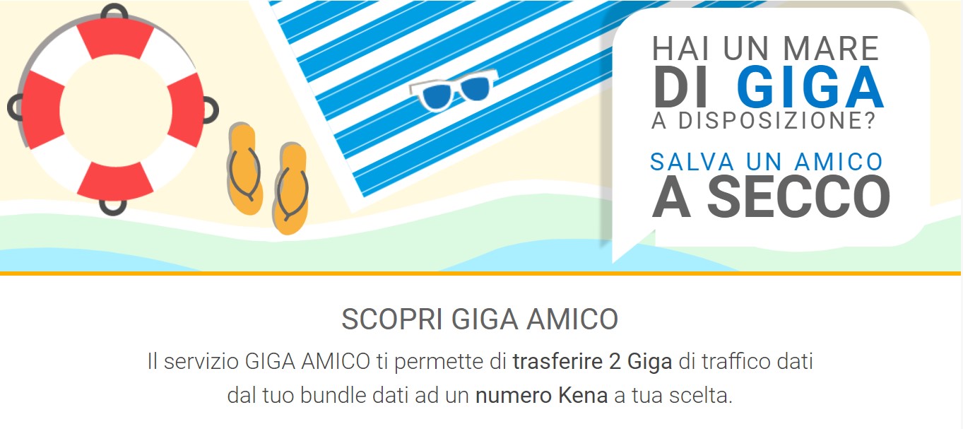 In un’estate arida come questa, è il caso di dire che con questa iniziativa nessuno può rimanere “a secco” di traffico dati. Infatti, Kena Mobile lancia il servizio Giga Amico che permette di trasferire 2GB dei propri ad un altro numero Kena (non si possono invece mandare ad un numero non Kena).