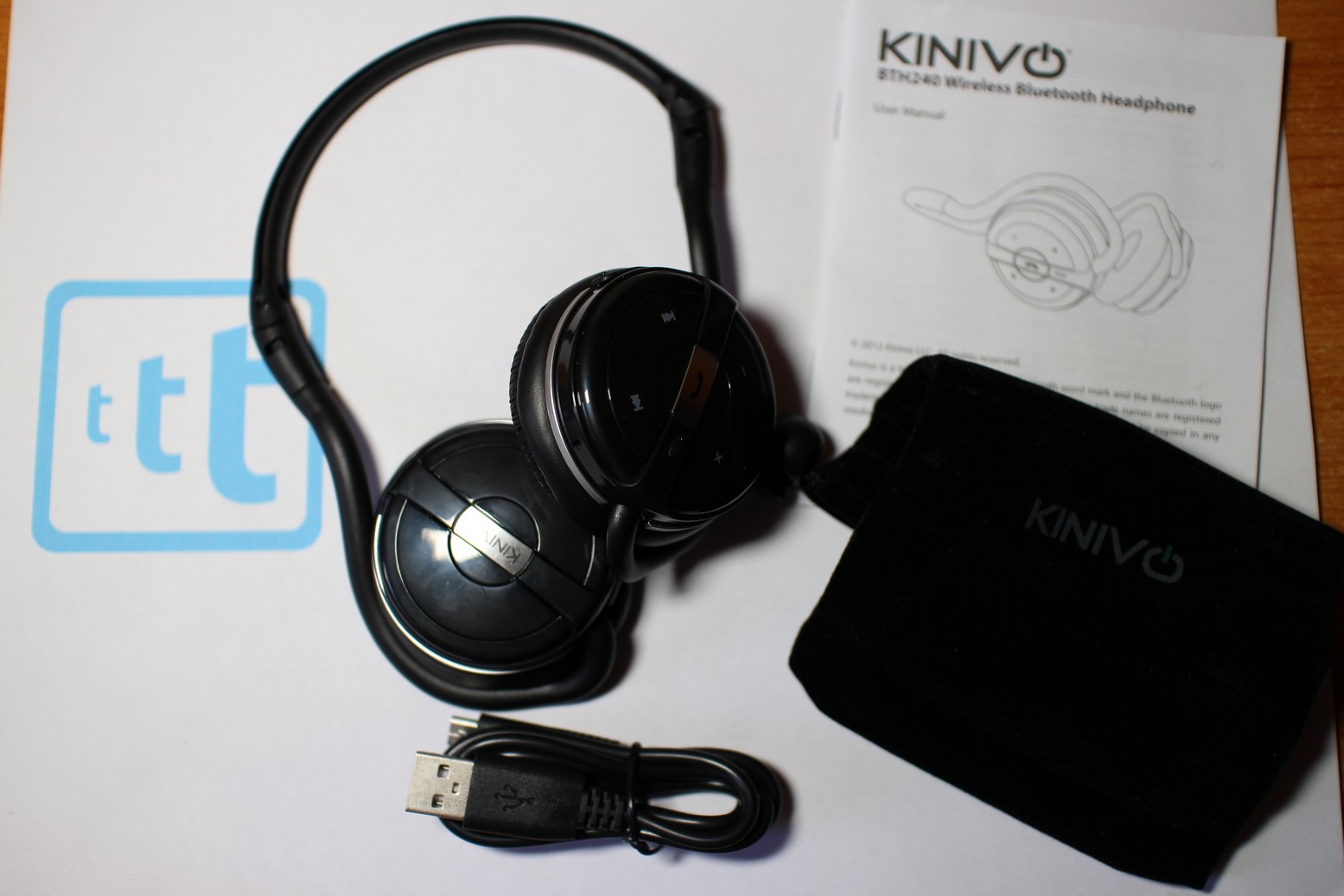 CONFEZIONE La confezione delle Kinivo BTH240 è totalmente in cartone lucido, al suo interno oltre alle nostre cuffie troviamo un cavo USB per la ricarica, una custodia per trasportarle in giro e un manuale di istruzioni