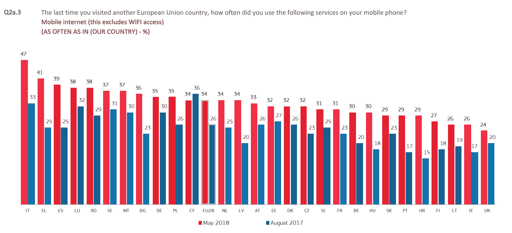 Secondo i dati emersi da un sondaggio europeo pubblicato questo mese, solo il 62% degli europei è al corrente dell’azzeramento dei costi di roaming nell’Unione. L’Italia si piazza con il suo 55% tra gli ultimi posti in classifica, seguita solo da Francia, Regno Unito, Grecia e Romania.
