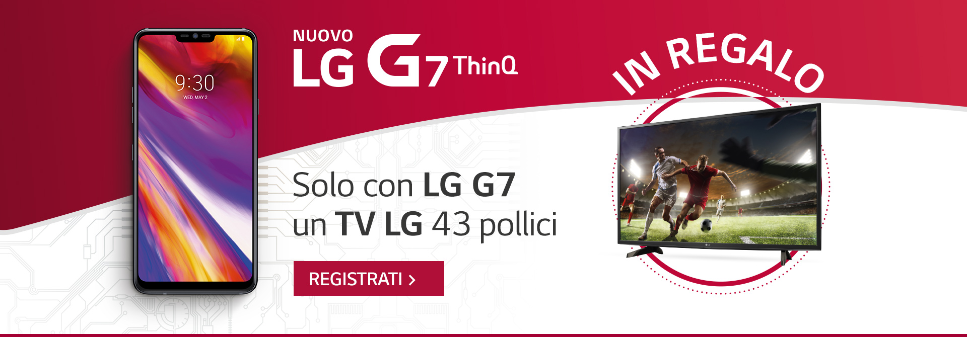 Dal 7 al 21 Giugno 2018, tramite l’offerta LG For You, acquistando un LG G7 ThinQ, si riceverà in omaggio un TV LG Full HD da 43 pollici del valore di 429€.
