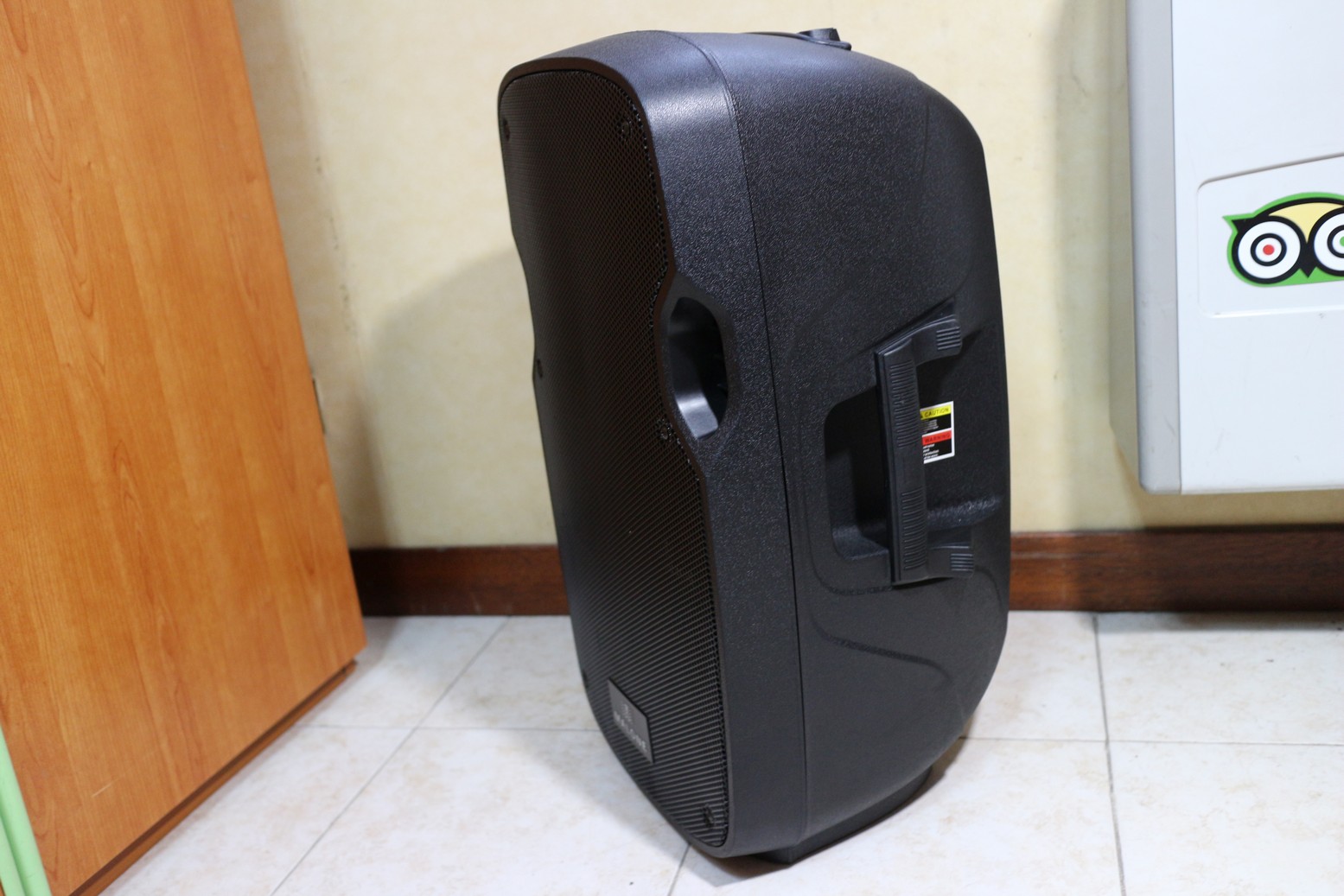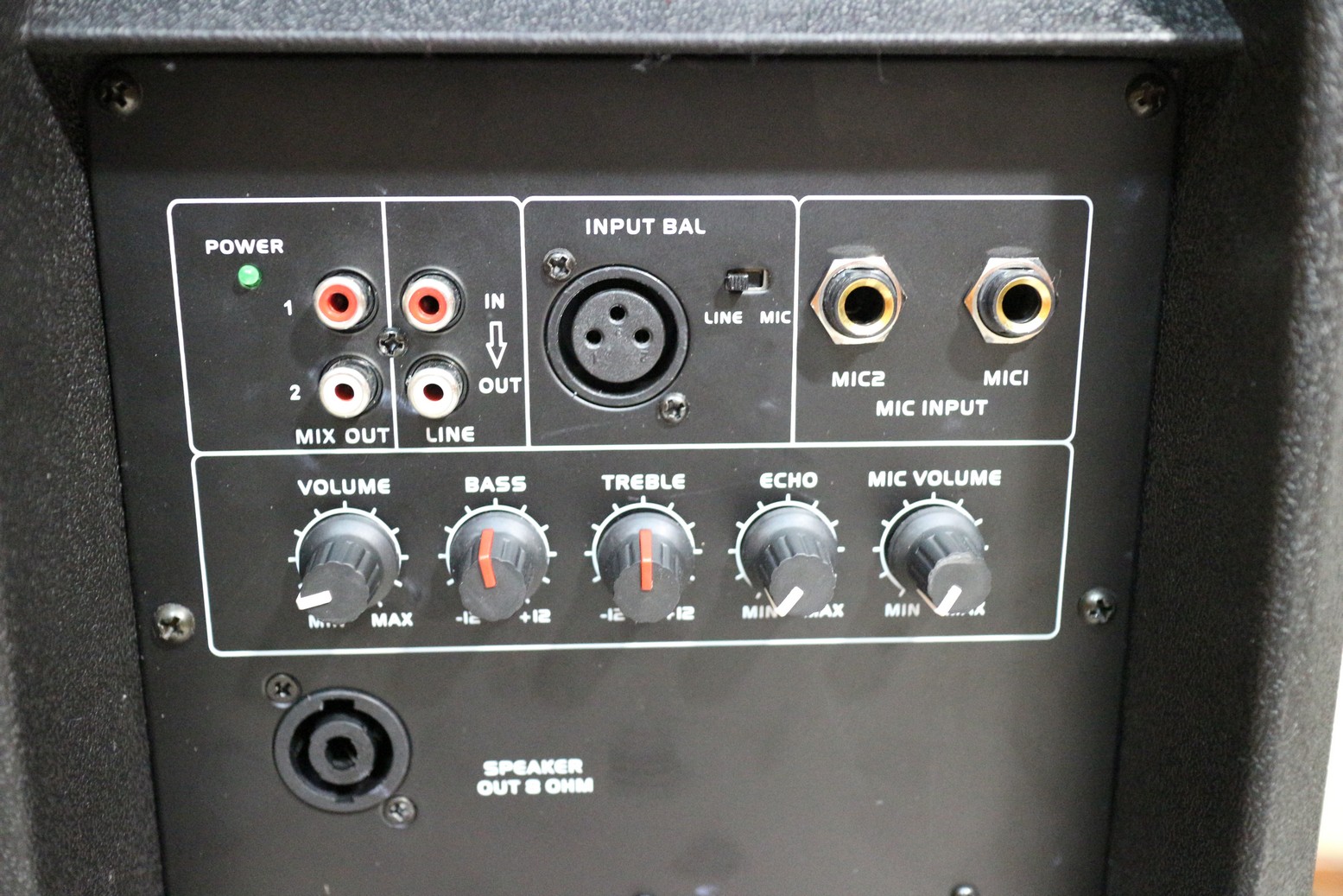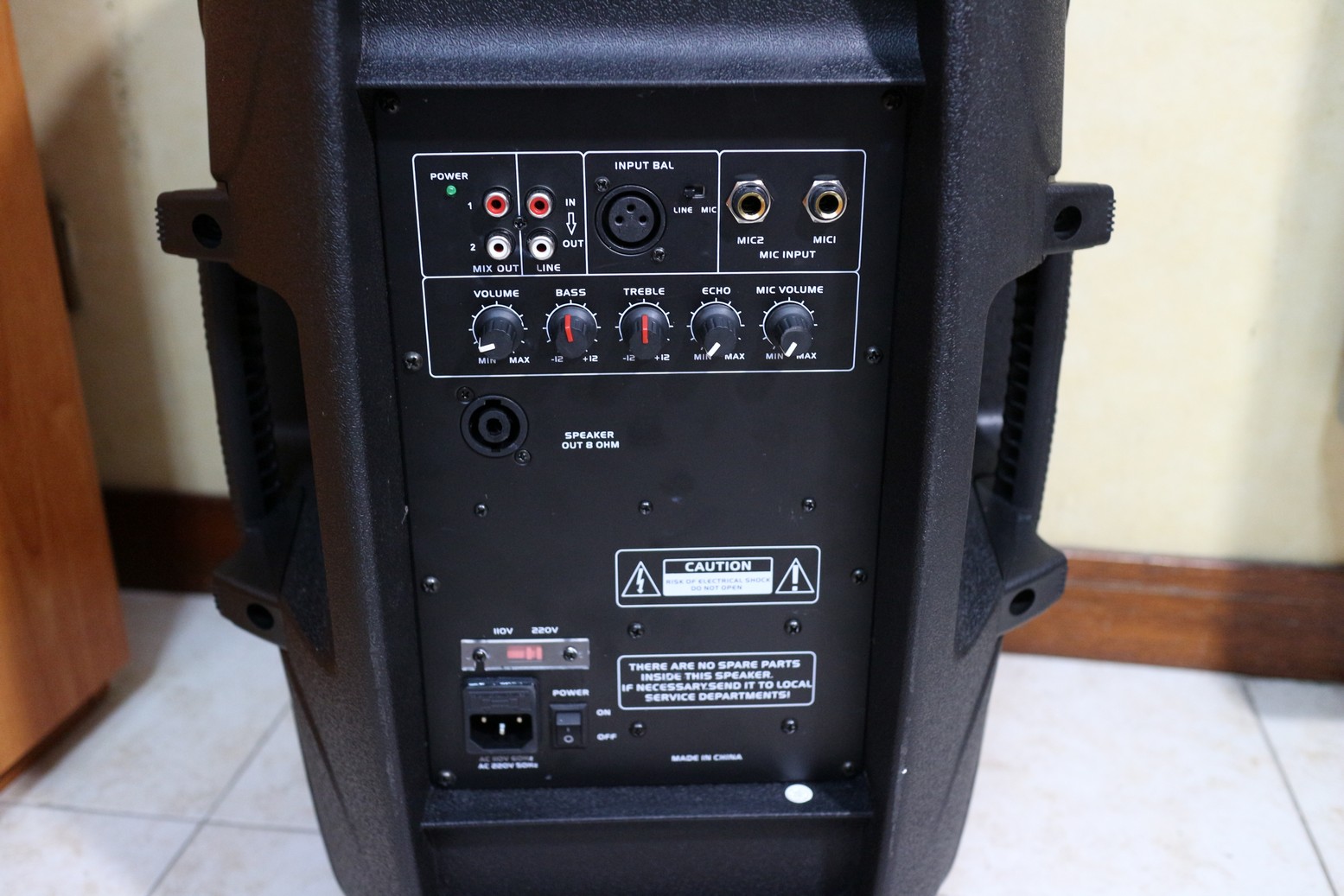 COSTRUZIONE E’ grande 34 x 57,5 x 31cm (LxAxP) e pure pesante con i suoi oltre 14Kg di peso ma la qualità c’è e la si percepisce subito. Dentro questa cassa attiva molto rubusta troviamo un potente altoparlante a due vie e un buon sistema di amplificazione e mixaggio integrato, con tutte le connessioni e tasti siti in un pannello posteriore.