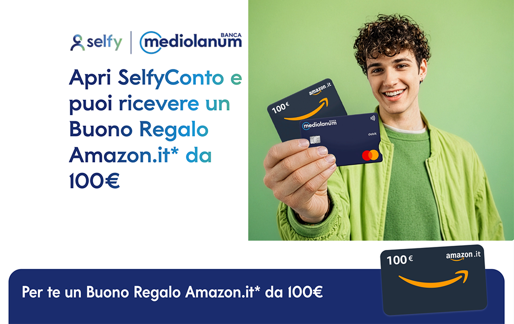 Aprendo SelfyConto di Mediolanum si ottiene un buono Amazon da 100€: si fa tutto in pochi minuti con lo SPID