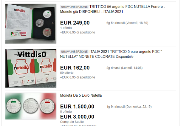 Sono tantissime, infatti, le proposte d’acquisto per la moneta dedicata alla Nutella e i prezzi sono esorbitanti: si va da un minimo di 200 euro fino ad arrivare addirittura a 1.500 euro per una singola moneta.