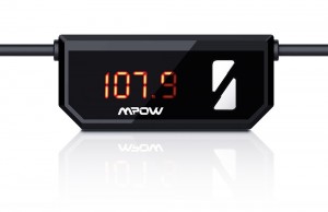 COSTRUZIONE E FUNZIONAMENTO Mpow Streambot FM si presenta abbastanza bene, totalmente di plastica lucida, lungo circa 90 cm. All’estremo destro troviamo l’adattatore audio jack da 3.5mm, al centro un piccolo display che ci indica le frequenze, dei pulsanti per spostarsi avanti e indietro, invece all’estremo sinistro l’adattatore da inserire nella presa accendisigari a 12V della nostra autovettura, che include anche una presa USB, cosa utile da non sottovalutare.