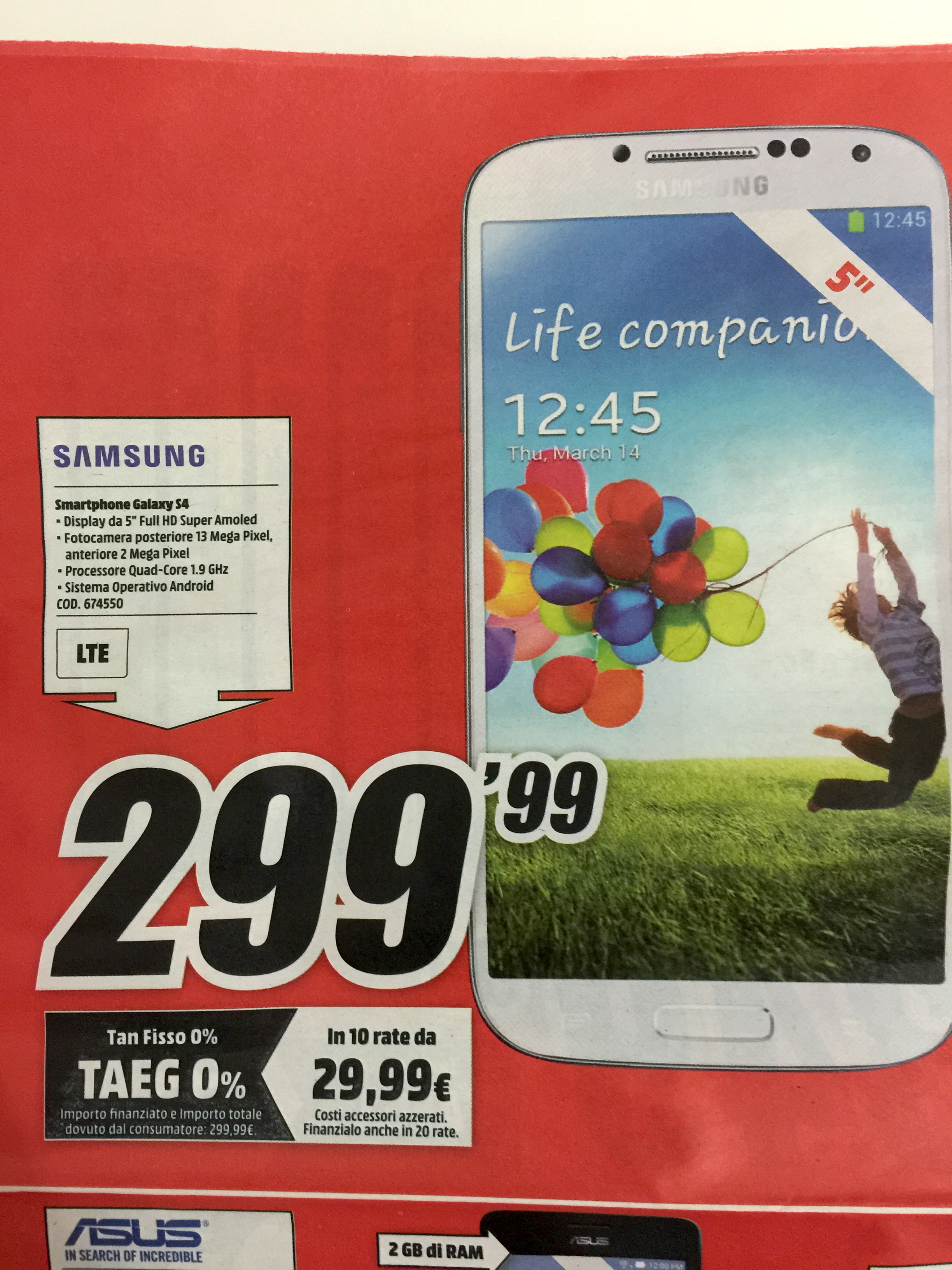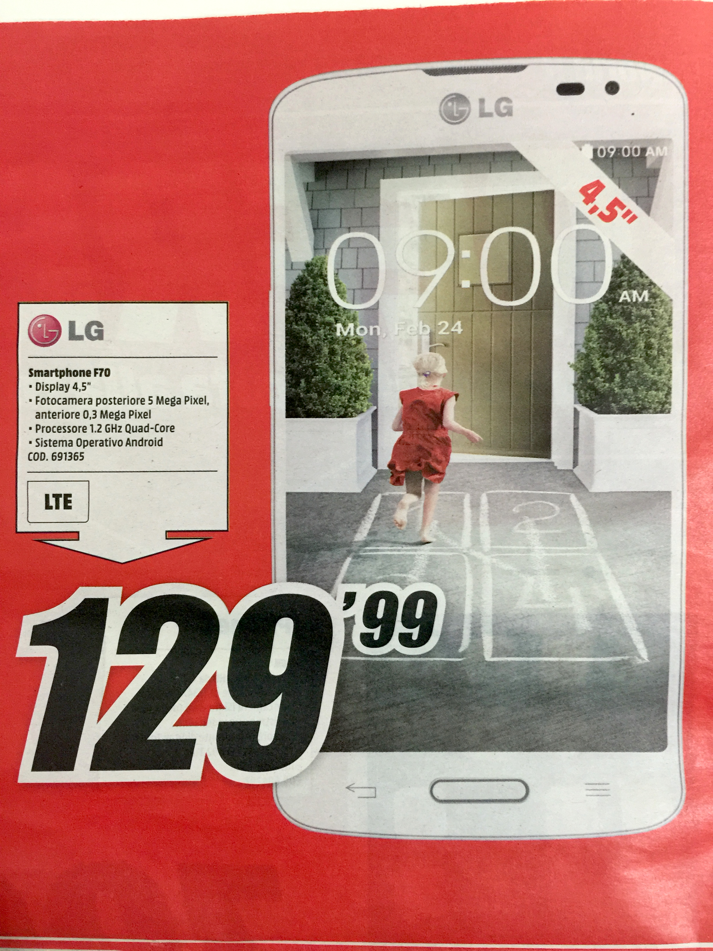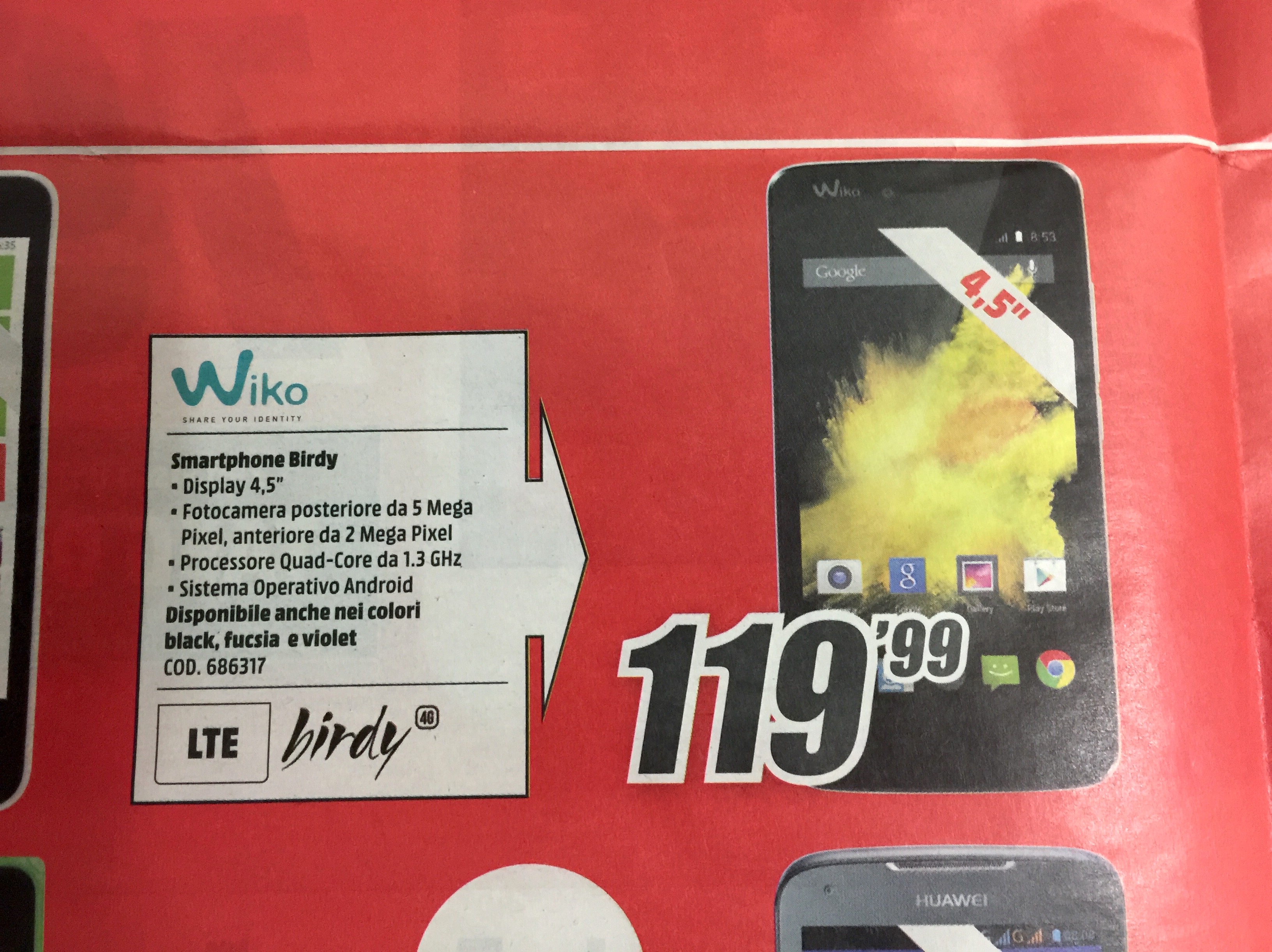 Tra gli smartphone troviamo l’LG F70 a 129,99€ e l’Huawei Y340 a 94,99€ mentre in casa Samsung il Galaxy S4 è proposto a 299,99€. Prende posizione a mio parere prezzo qualità il Wiko Birdy a 119,99€. Inoltre Apple Tv a 99,99€. Rimane in top gamma Samsung a 399,99€ lo Smartwatch Gear S. Fit Bit in qualità prezzo non molto eccellenti, sforna Charge hr Activity Tracker a 149,99€.