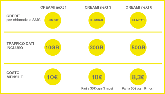 Chiaramente delle tre offerte, quella più allettante è la CREAMI neXt 6, che offre ben 50GB ad un prezzo “mensile” davvero concorrenziale, a fronte però di un esborso immediato di ben 50€. Per ulteriori informazioni ed altri dettagli vi lasciamo sotto il link alla pagina dedicata all’offerta.