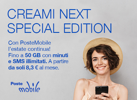 Creami neXt – Special Edition è la nuova gamma di piani tariffari di Poste Mobile, che offrono minuti ed SMS illimitati, e fino a 50GB al mese
