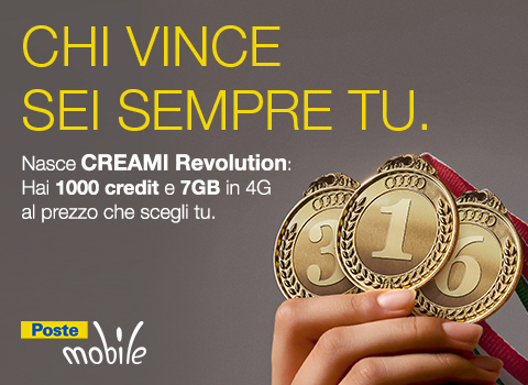Il costo del piano prescelto viene addebitato sul credito residuo della SIM al momento dell’attivazione e poi ogni 4 settimane per il Piano Creami Revolution 1; ogni 12 settimane per il Piano Creami Revolution 3 e ogni 24 settimane per il Piano Creami Revolution 6. L’offerta è attivabile sia da clienti privati che con P.IVA al momento dell’acquisto di una SIM ricaricabile senza vincolo di portabilità entro il prossimo 30 Luglio presso qualsiasi ufficio postale, ma anche entro il 18 giugno comodamente sul sito dell’operatore virtuale.
