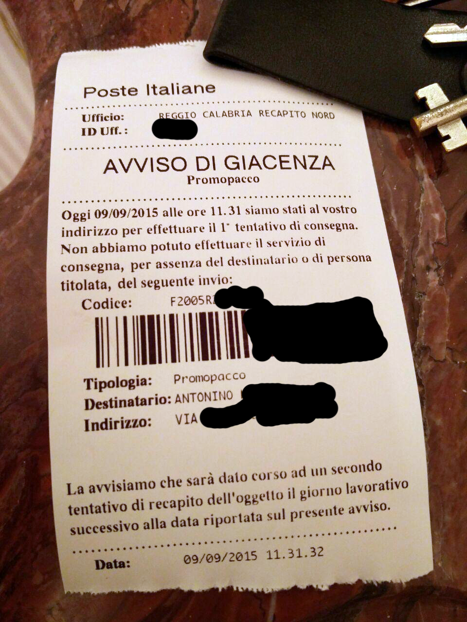 Siamo appena rientrati a casa.. e guardate un po’ cosa abbiamo trovato nella cassetta della posta (con data sbagliata, Poste Italiane non si smentisce mai)… Non aspettavamo alcun pacco e viene da Amazon (abbiamo verificato il tracking). Molto probabilmente era in consegna pure per noi, seppur non possiamo ovviamente confermare il tutto, non avendo fisicamente il pacco in mano!