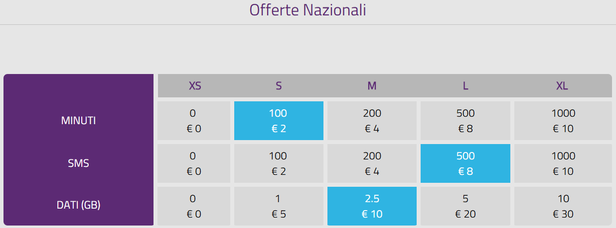 Attualmente le tariffe prevedono 5 centesimi al minuto con tariffazione ogni 60 secondi verso tutti (fissi e mobili quindi), 5 centesimi per gli SMS e 1 centesimo ogni MB con tariffazione ogni 8KB scaricati. C’è inoltre la possibilità di comporre la propria offerta personalizzata: a dire il vero, anche se l’idea è davvero allettante, il costo è davvero molto elevato confrontando soprattutto con le varie Special 1000. Per quanto riguarda i bundle internazionali (quindi chiamate verso l’estero), è disponibile una pagina web con il dettaglio per ogni singola nazione supportata.