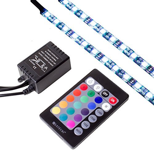 CONFEZIONE In cartone, inclusi tutti gli accessori per una facile e veloce installazione: 2 strisce a led rgb da 30 cm con durata di ben 100.000 ora, telecomando, cavo alimentazione 12V molex, connettore a D 4 pin, controller, e una prolunga.