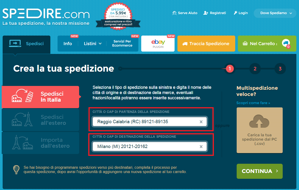 Sono pochi semplici passi per acquistare la spedizione, il servizio funziona così: