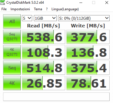 Le velocità in lettura/scrittura sono più che soddisfacenti, il salto da un hard disk lo sentirete sicuramente anche con questo modello, ci viene il dubbio più che altro sulla effettiva durata nel tempo di queste prestazioni.