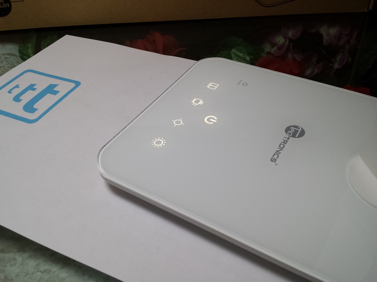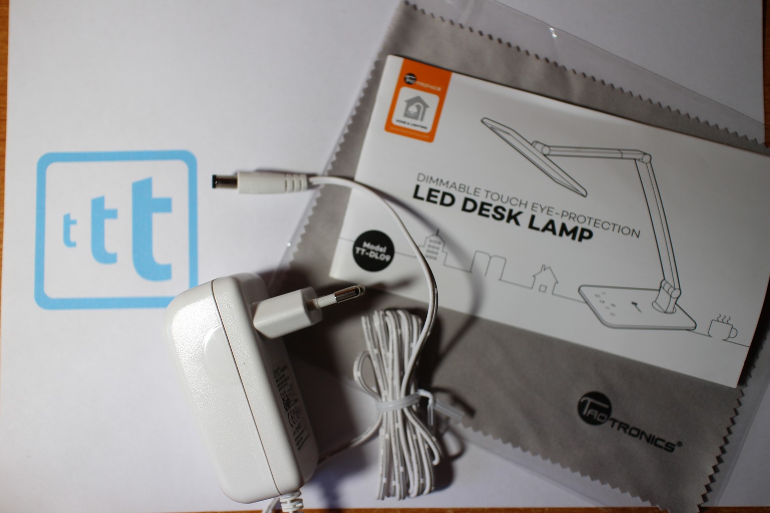 CONFEZIONE Dopo l’acquisto in pochi giorni una simpatica valigetta in cartone arriverà a casa vostra, molto ben realizzata, con tanto di simpatico saluto “Hello” all’apertura della confezione. Al suo interno, la TaoTronics TT-DL09 , il suo cavetto di alimentazione, un manuale rapido e un panno in microfibra per lucidare la base, realizzata in vetro.