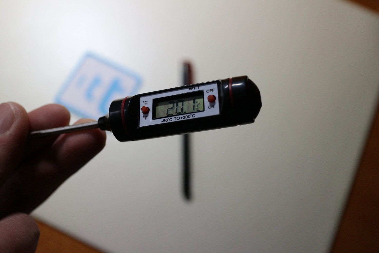 COSTRUZIONE Ha uno stelo e un corpo con un display LCD; Lo si accende e inizia ad indicare la temperatura rilevata nello stelo nel range tra -50°C e 300 °C, l’altro pulsante invece seleziona tra °C ed °F.